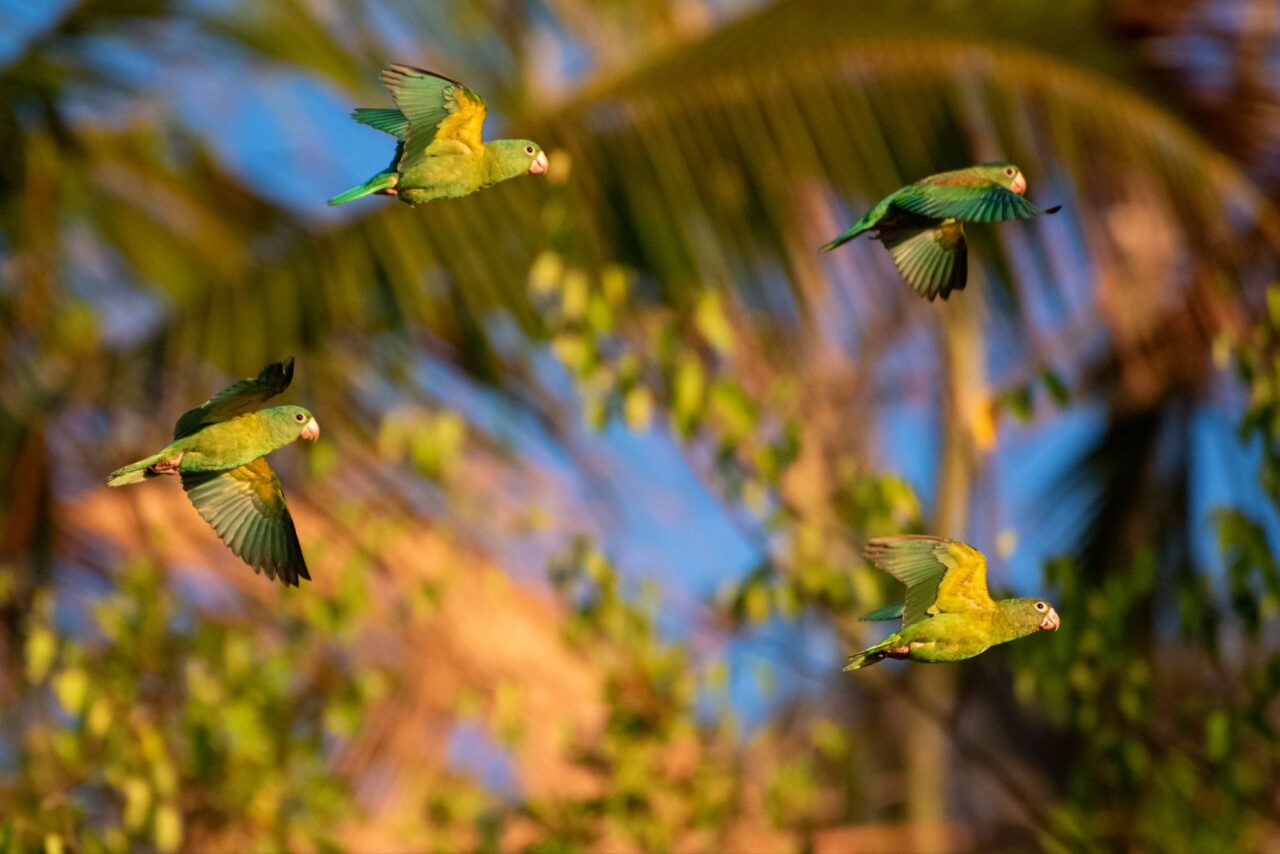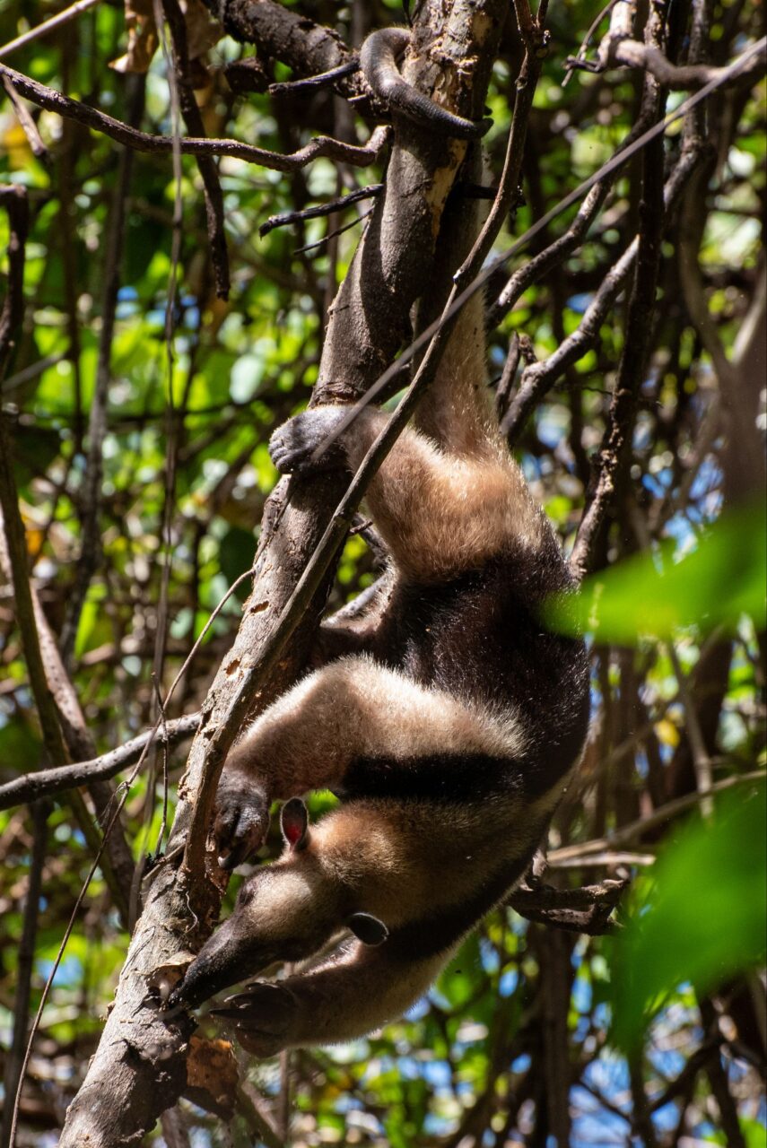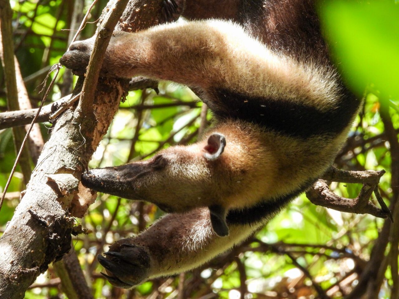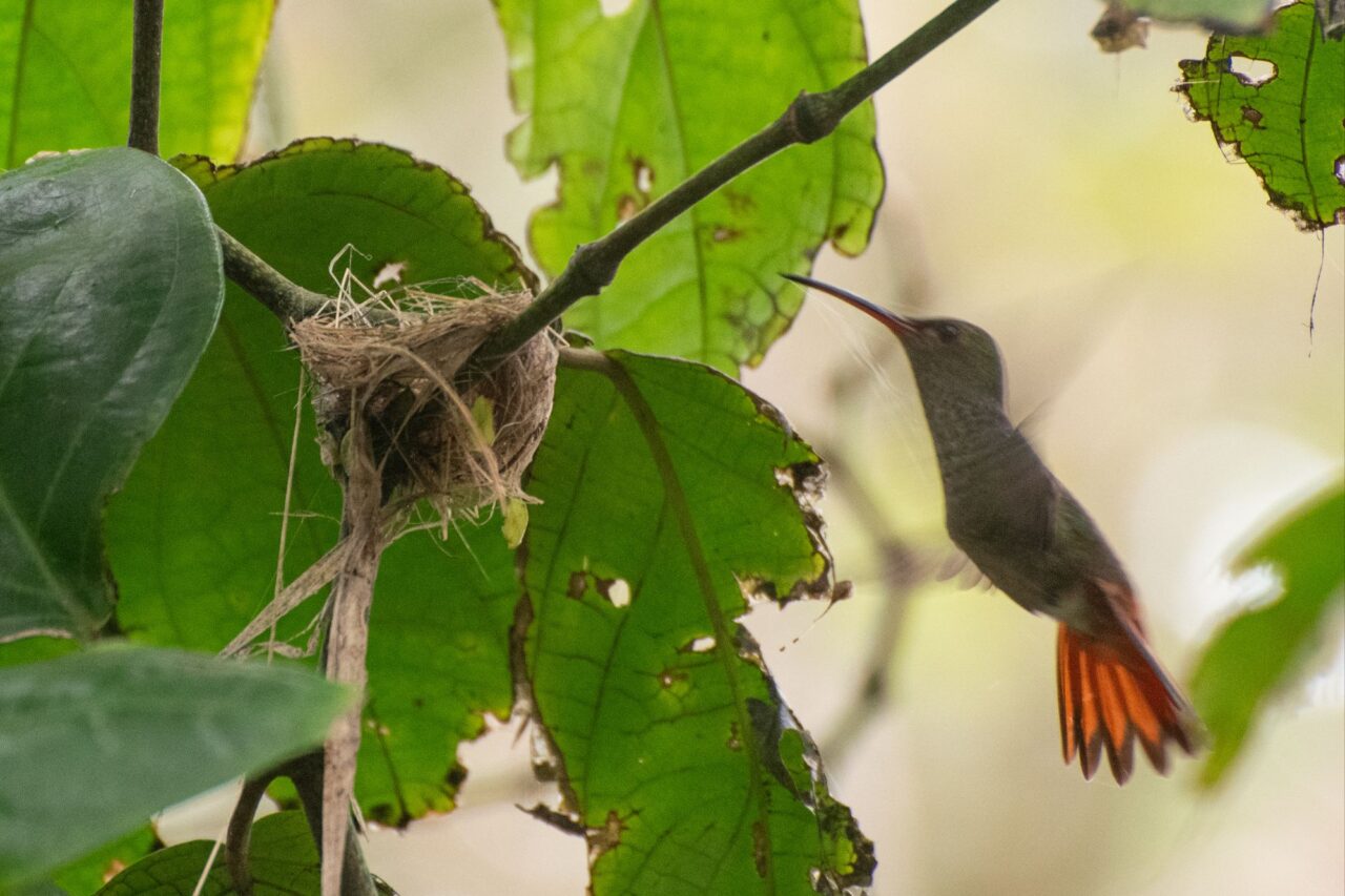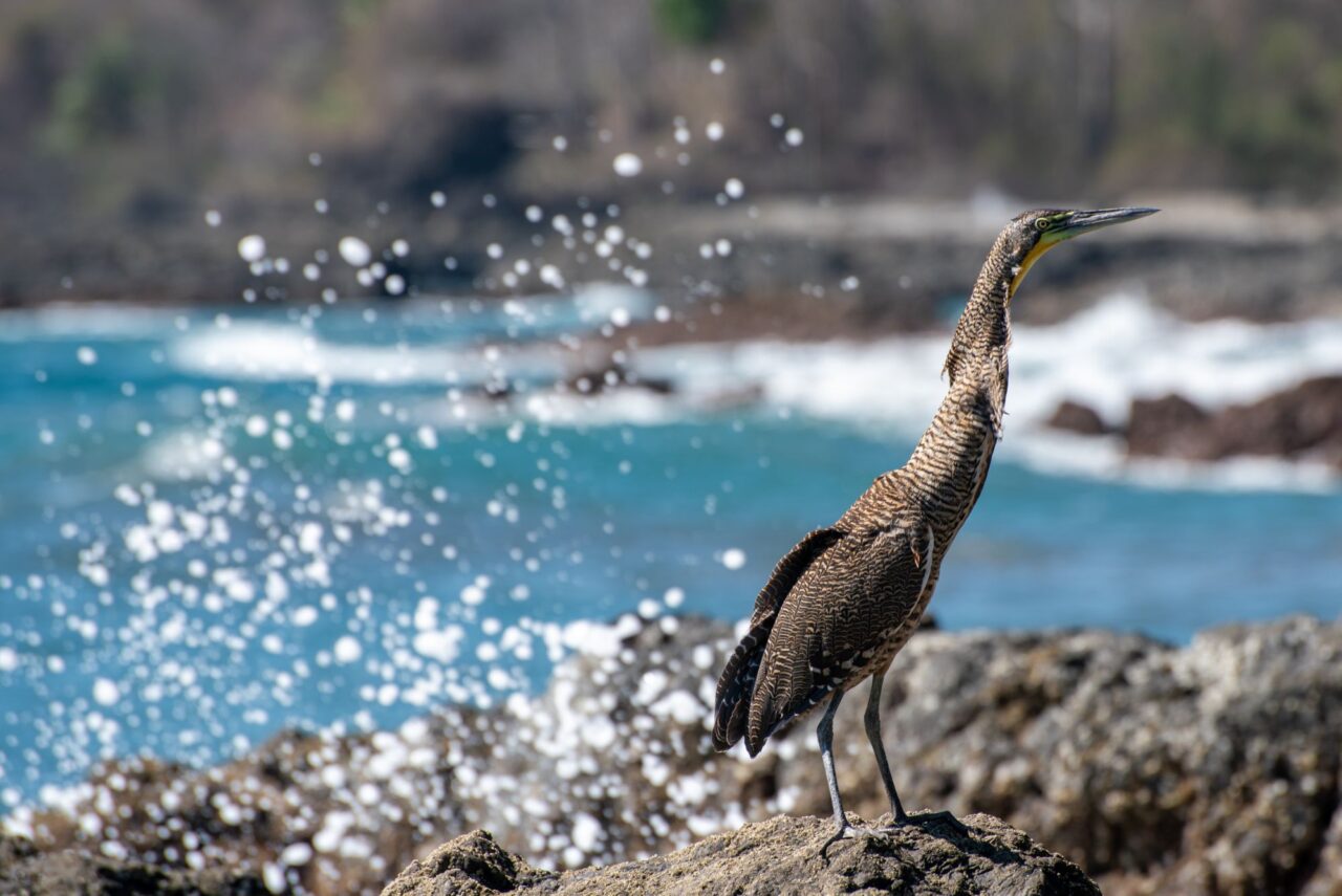Wir tapern die Straße am Strand Playa Negra mit seinem schwarzen Sand entlang. Die Häuser haben viel Abstand und große Gärten, da sehen wir viele flattrige Federkleider. Ein Specht nimmt eine am Baum hängende Frucht aus. Eine Drossel, der Nationalvogel von Costa Rica, stöbert durch die Vorgärten. Ein Kolibri sammelt die Blüten einer großen Staude ab. Kiskadees bauen ein Nest oben auf nem Strommast. Tangare flirten im Gebüsch. Ein Habicht ruft vom Baum zu uns herab. Das übliche Geschnabel, Gesinge und Geflatter des Morgens, nur eben mit ganz anderen Vögeln. Echt schön!