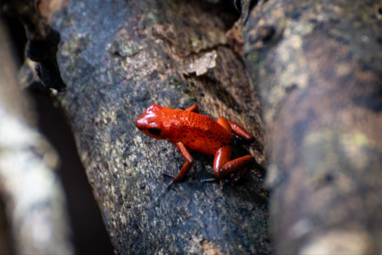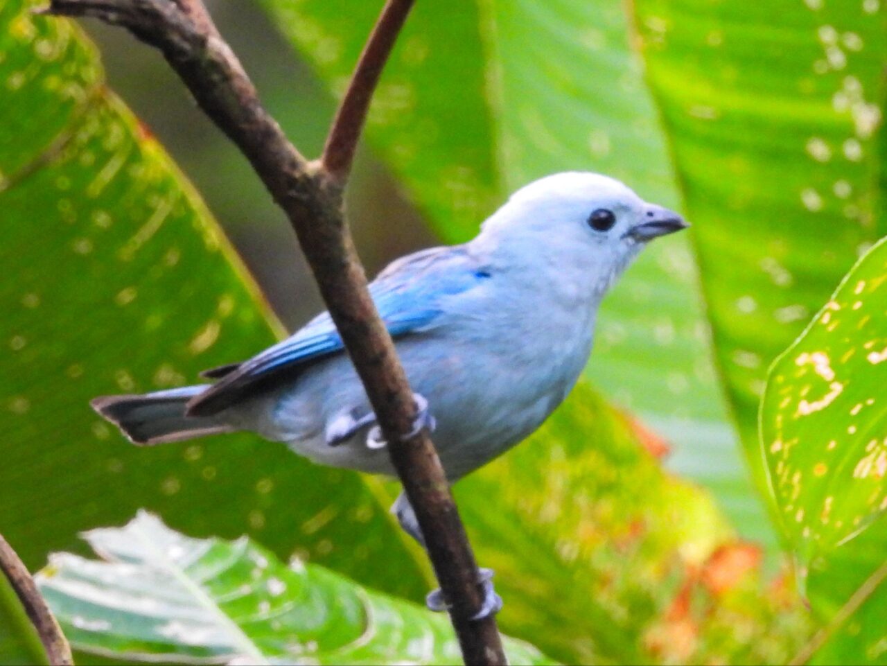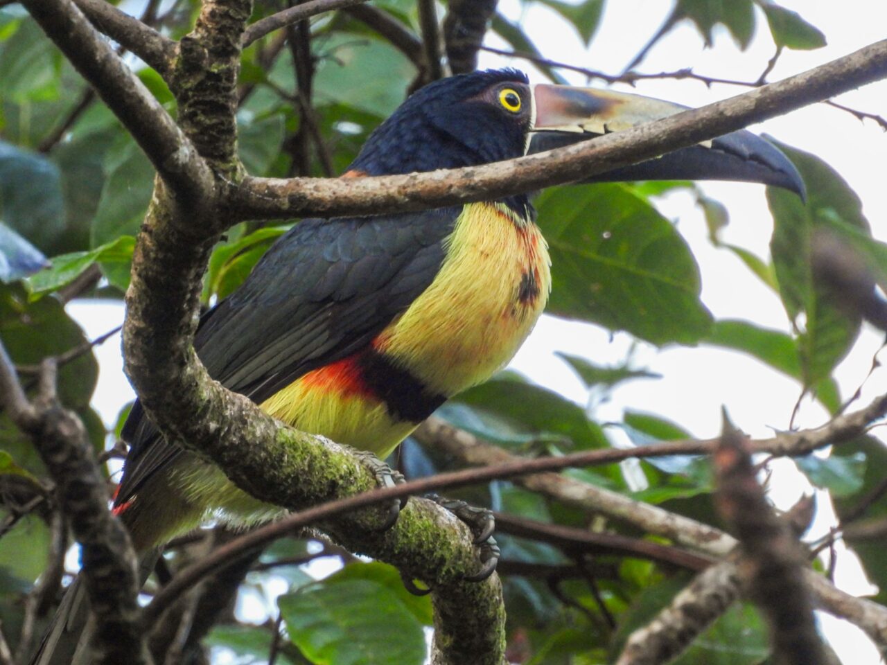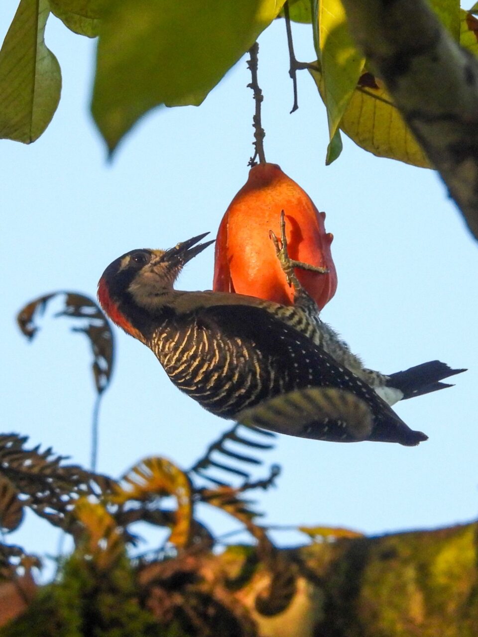 Wir tapern die Straße am Strand Playa Negra mit seinem schwarzen Sand entlang. Die Häuser haben viel Abstand und große Gärten, da sehen wir viele flattrige Federkleider. Ein Specht nimmt eine am Baum hängende Frucht aus. Eine Drossel, der Nationalvogel von Costa Rica, stöbert durch die Vorgärten. Ein Kolibri sammelt die Blüten einer großen Staude ab. Kiskadees bauen ein Nest oben auf nem Strommast. Tangare flirten im Gebüsch. Ein Habicht ruft vom Baum zu uns herab. Das übliche Geschnabel, Gesinge und Geflatter des Morgens, nur eben mit ganz anderen Vögeln. Echt schön!