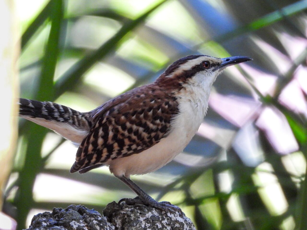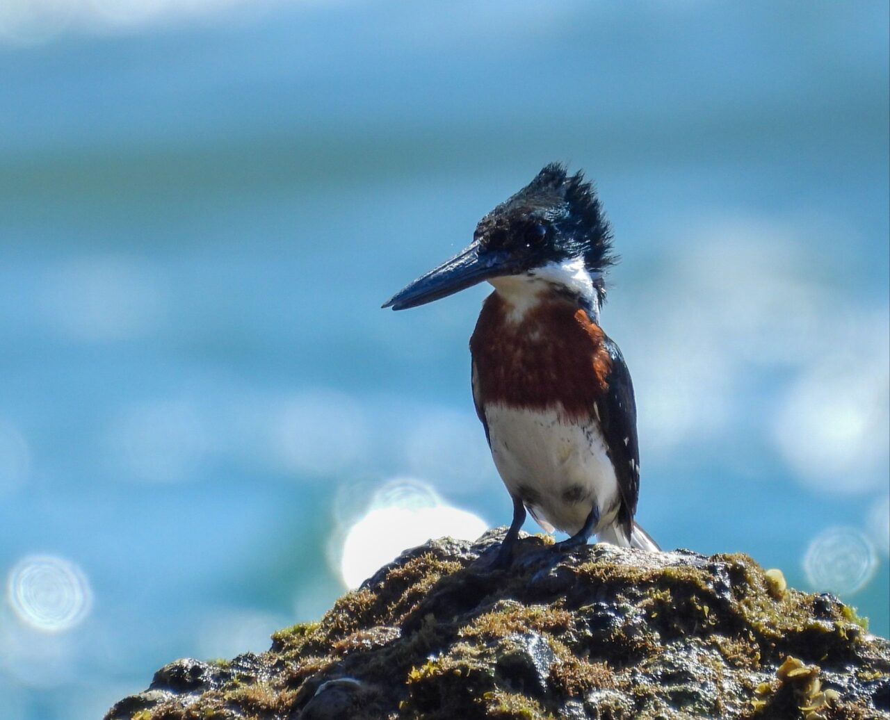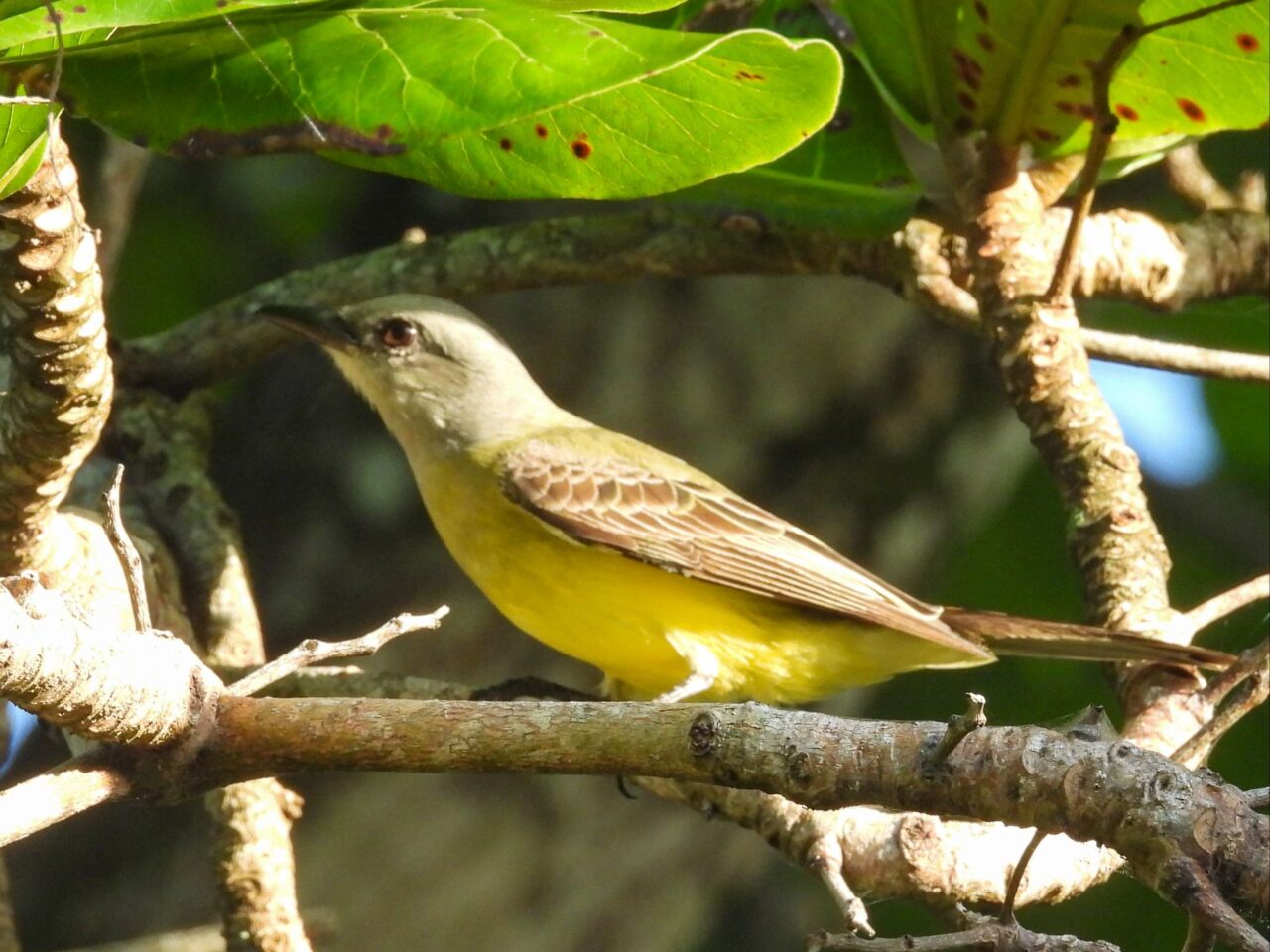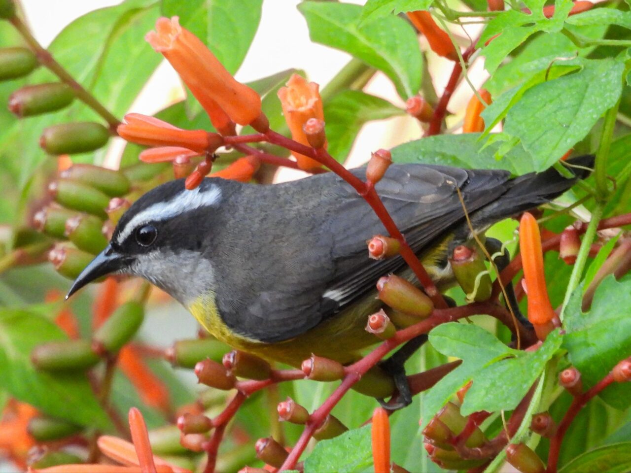 Wir tapern die Straße am Strand Playa Negra mit seinem schwarzen Sand entlang. Die Häuser haben viel Abstand und große Gärten, da sehen wir viele flattrige Federkleider. Ein Specht nimmt eine am Baum hängende Frucht aus. Eine Drossel, der Nationalvogel von Costa Rica, stöbert durch die Vorgärten. Ein Kolibri sammelt die Blüten einer großen Staude ab. Kiskadees bauen ein Nest oben auf nem Strommast. Tangare flirten im Gebüsch. Ein Habicht ruft vom Baum zu uns herab. Das übliche Geschnabel, Gesinge und Geflatter des Morgens, nur eben mit ganz anderen Vögeln. Echt schön!