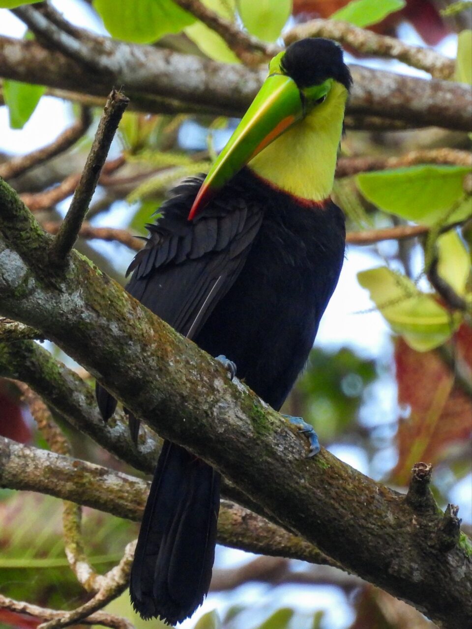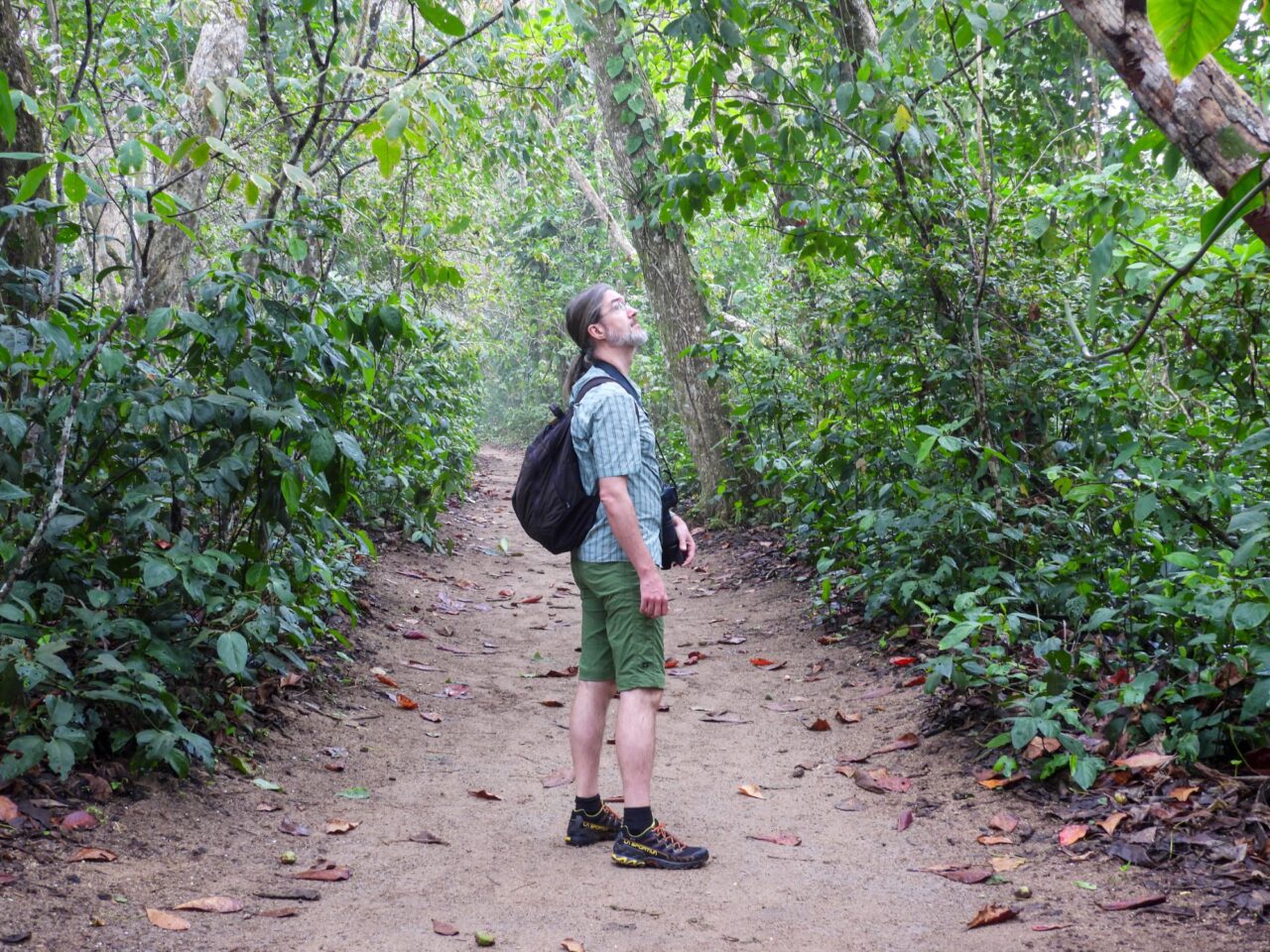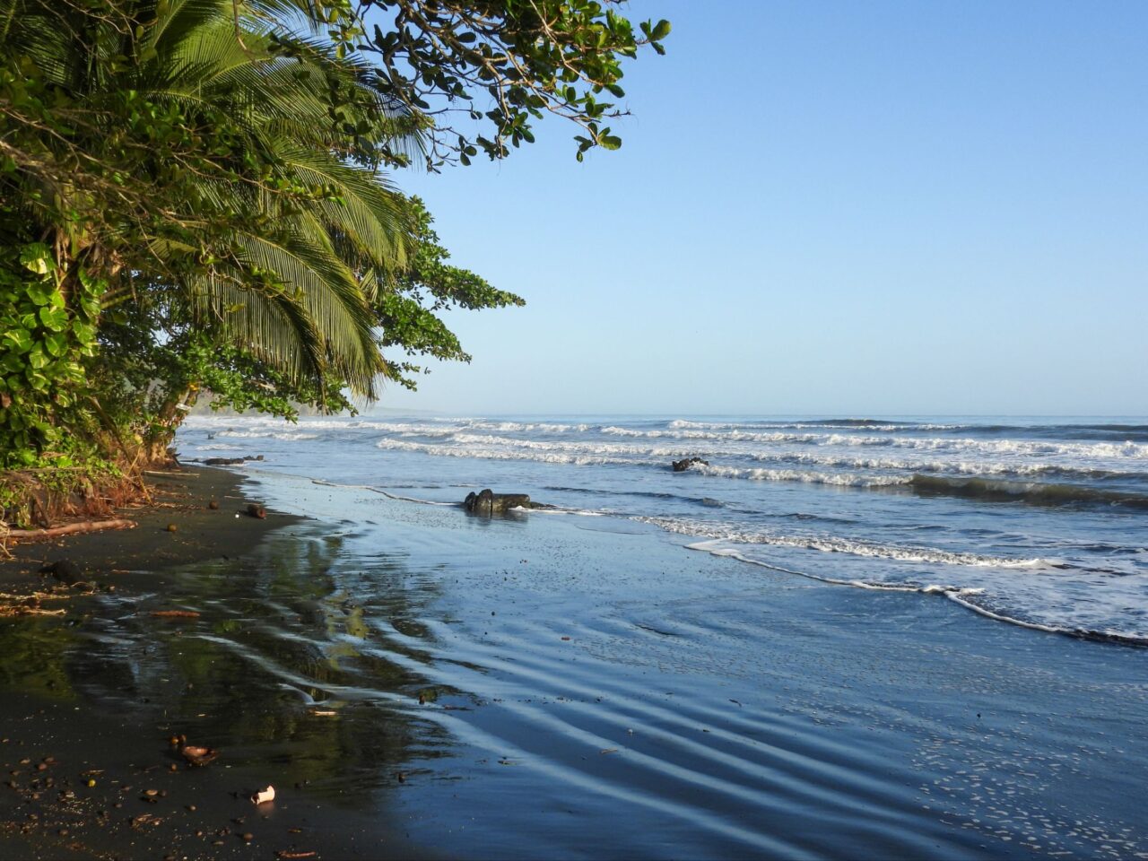 Den letzten Tag nutzen wir für die inzwischen übliche morgendliche Vogeltour. Um kurz vor 6 klingelt der Wecker, den wir gar nicht brauchen. Die Brüllaffen sind seit einer halben Stunde mit Stimmübungen beschäftigt, und die Vögel beschweren sich lautstark über den Krach. Oder umgekehrt? Egal, wir sind jedenfalls wach. Also los, solange es kühl ist. Frühstück gibt’s danach. Der Bus fährt erst kurz nach Mittag, wir haben also Zeit, um zum Playa Negra zu laufen.