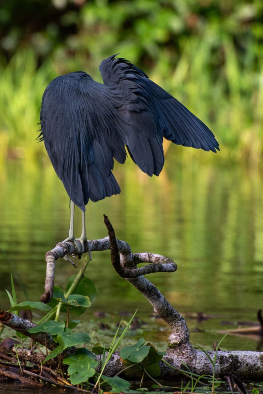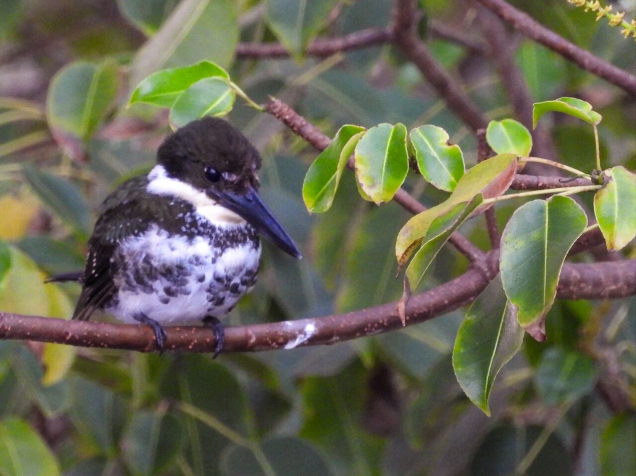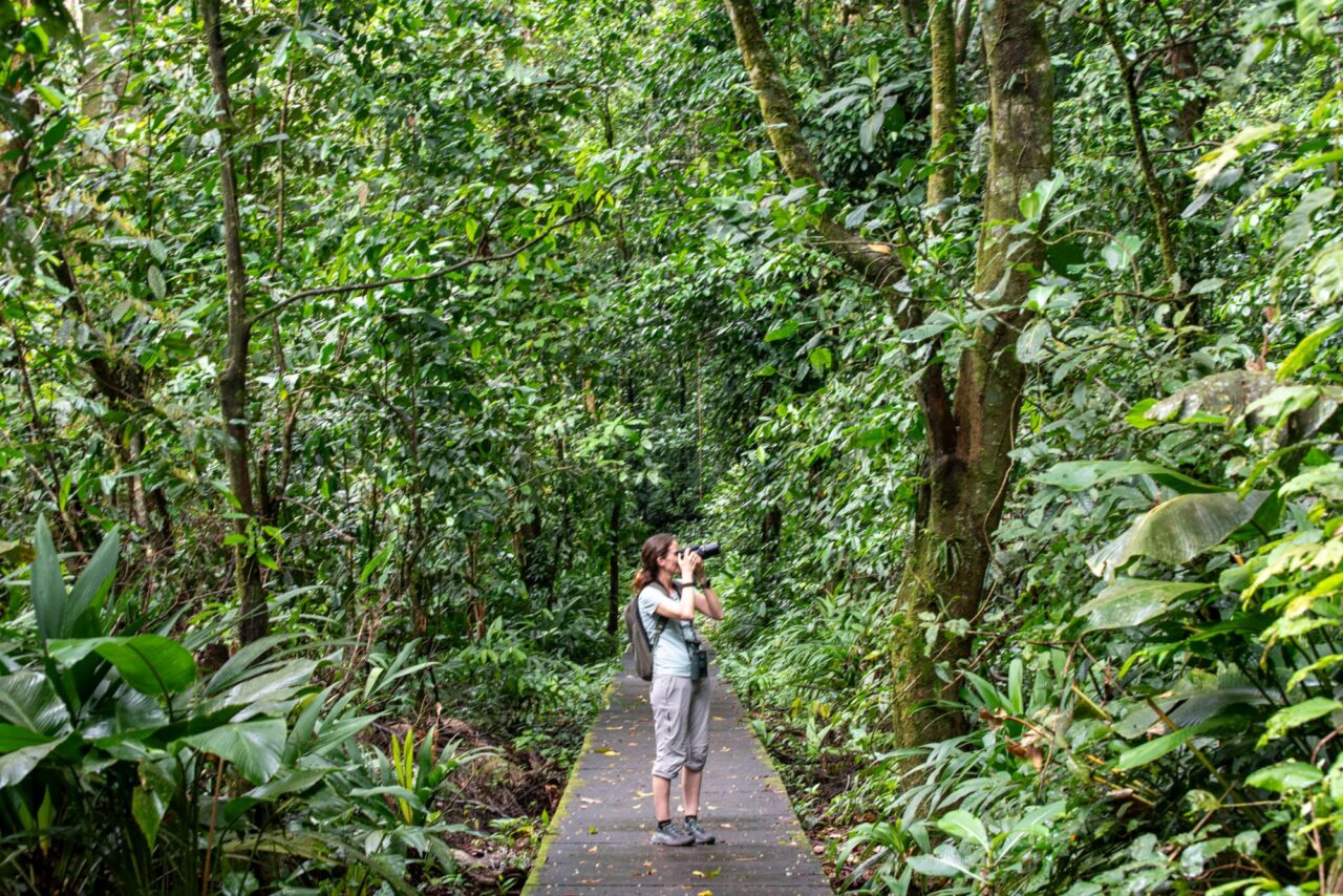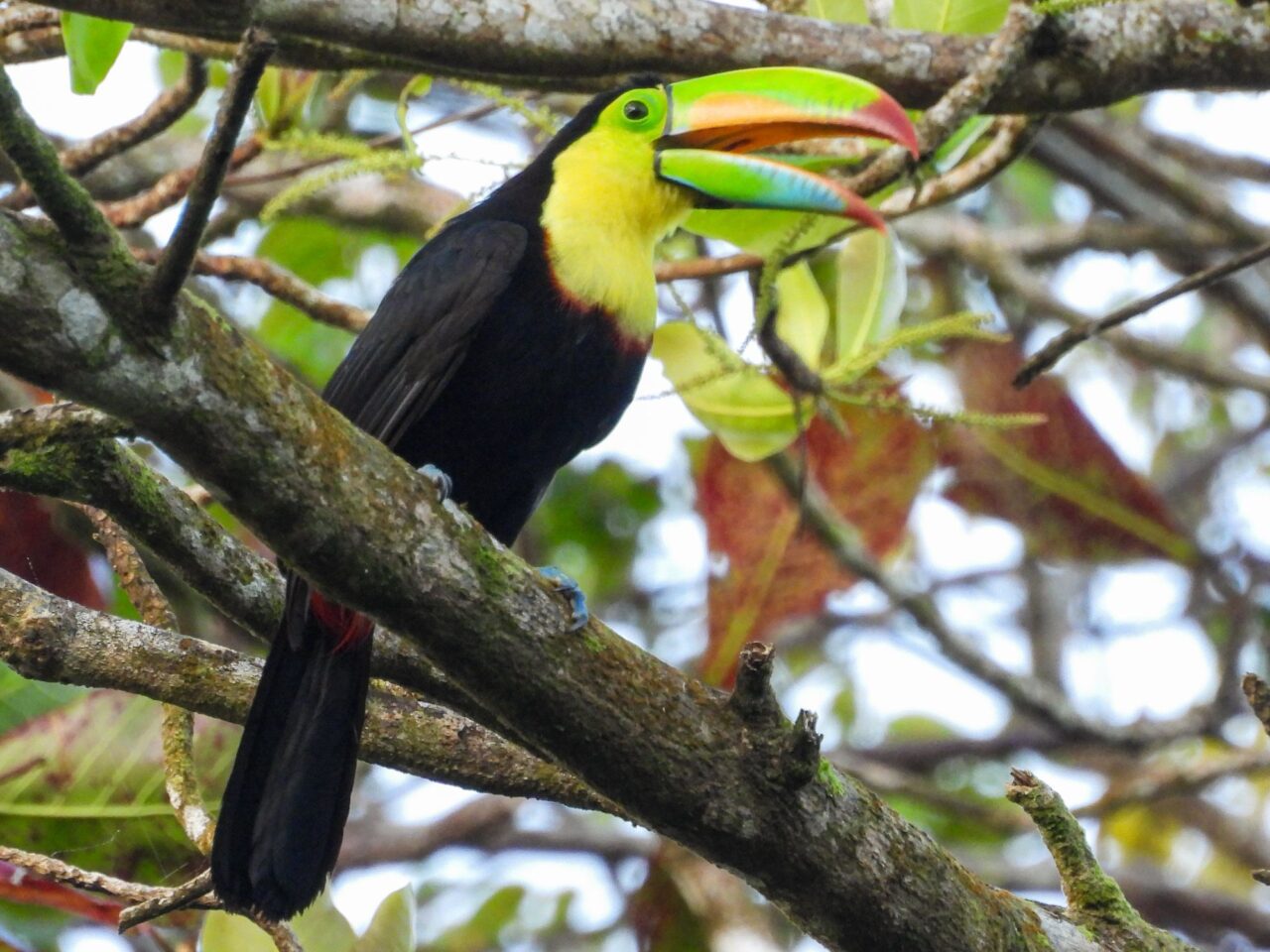 Den letzten Tag nutzen wir für die inzwischen übliche morgendliche Vogeltour. Um kurz vor 6 klingelt der Wecker, den wir gar nicht brauchen. Die Brüllaffen sind seit einer halben Stunde mit Stimmübungen beschäftigt, und die Vögel beschweren sich lautstark über den Krach. Oder umgekehrt? Egal, wir sind jedenfalls wach. Also los, solange es kühl ist. Frühstück gibt’s danach. Der Bus fährt erst kurz nach Mittag, wir haben also Zeit, um zum Playa Negra zu laufen.