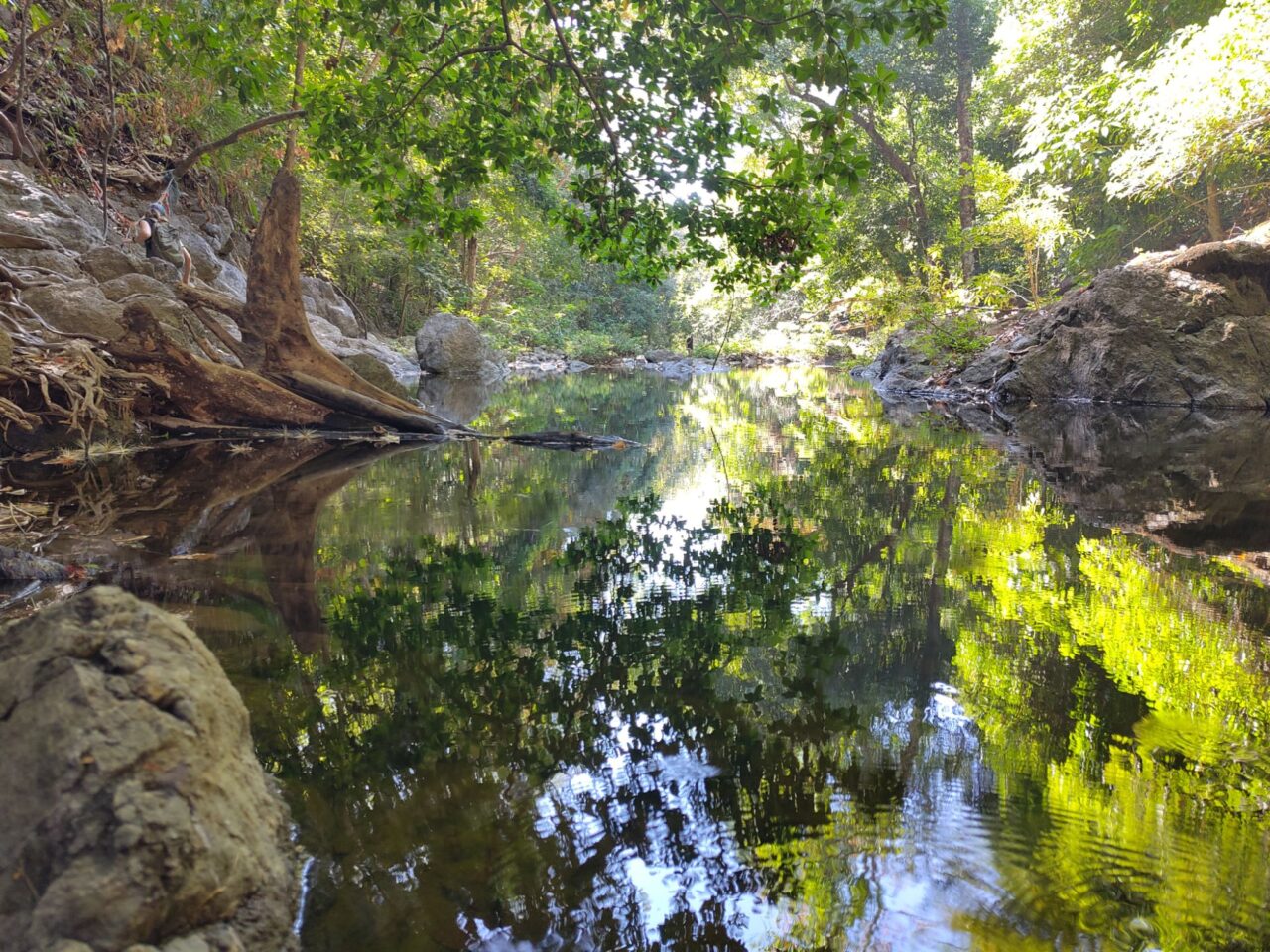 Nach ner guten Stunde und stolzen 2 km machen wir uns auf den Rückweg. Je langsamer wir waren, desto besser, denn dann gab es viel zu beobachten. Die Sonne steht jetzt um kurz nach 7 schon so hoch, dass wir den Schatten suchen. Heute ist keine Wolke am Himmel. Leider haben wir damit gar nicht gerechnet, sonst hätten wir es bestimmt zum Sonnenaufgang ans Meer geschafft. Nunja. Schlaf ist keine Luxusdroge, sondern war eben auch mal wichtig. Wir schauen noch nach dem Freddy mit Fredchen, und ob der FFF noch aktiv ist. Ist er.