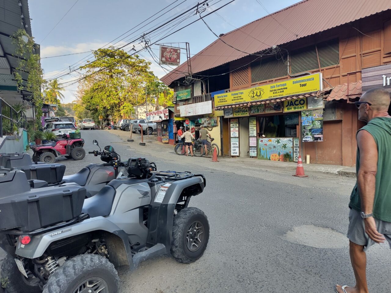 Es ist hier angenehm, tagsüber nur 30°C, nachts etwa 22°C, so sind wir ausgeruht und können morgens laufen. Naja… Wir schleichen, denn es gibt viel zu sehen. Es muss nicht immer gleich der Nationalpark sein. Hier wird heute Müll geholt – ja, Costa Rica ist eines der wenigen Länder hier, die eine funktionierende Müllentsorgung haben. Woanders wird der Müllhaufen hinterm Haus ja einfach angezündet, wenn zu groß, oder eben in den Bach gekippt. Vor dem Plastik gab es in diesen Ländern nur natürliche Verpackungen, da war das kein Problem. Dann wurde Plastik eingeführt, aber keine Entsorgung. Da können die einzelnen Menschen genau gar nichts tun, das ist echt ein Dilemma, aus dem wir als Menschheit schleunigst raus müssen.