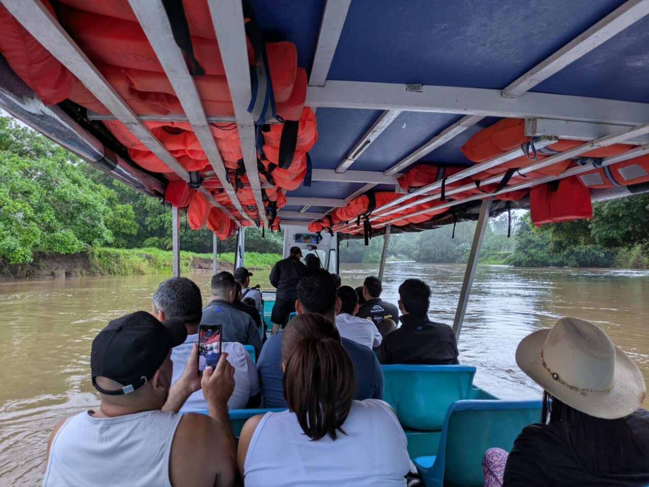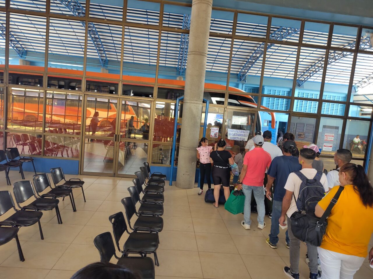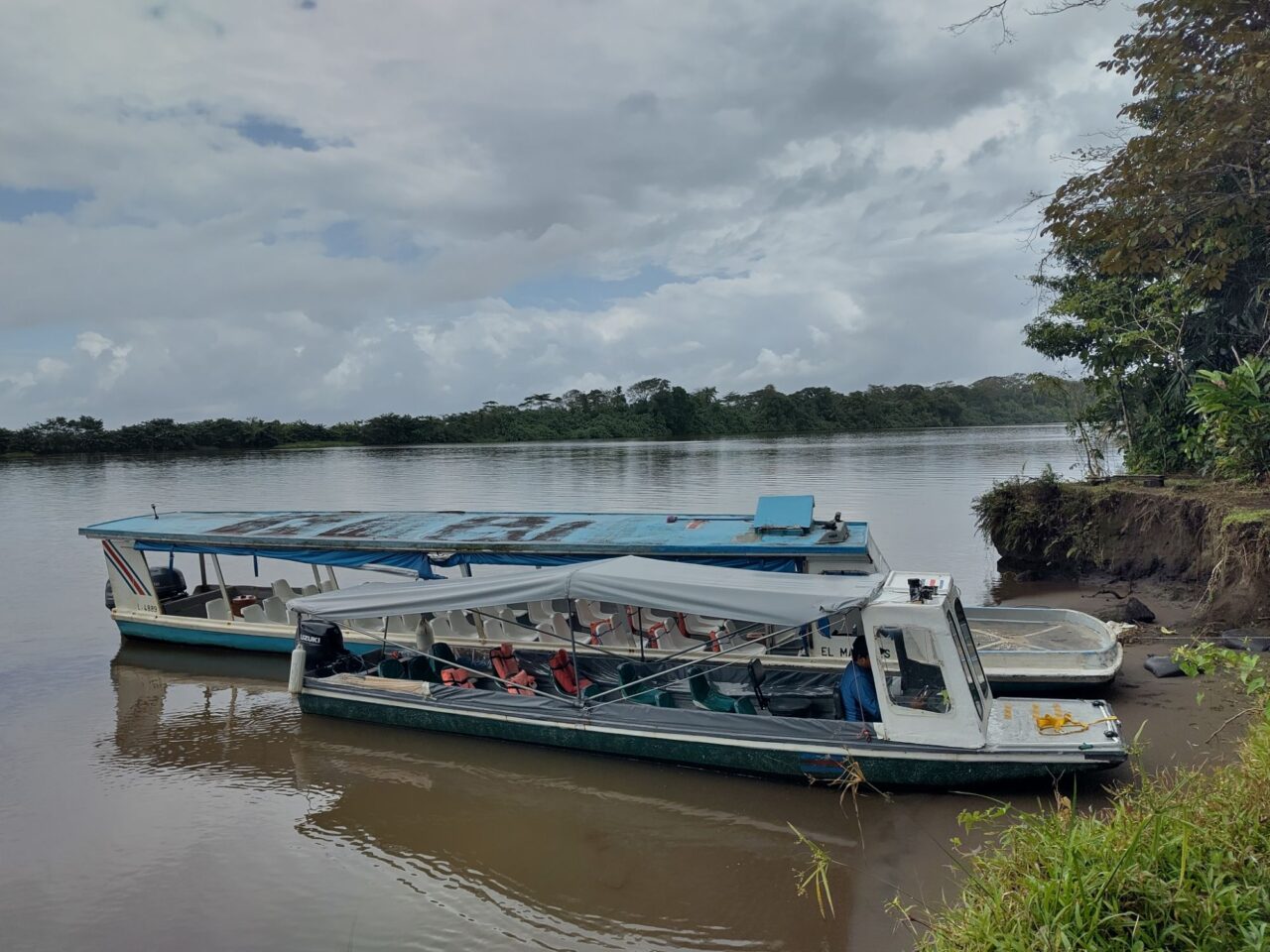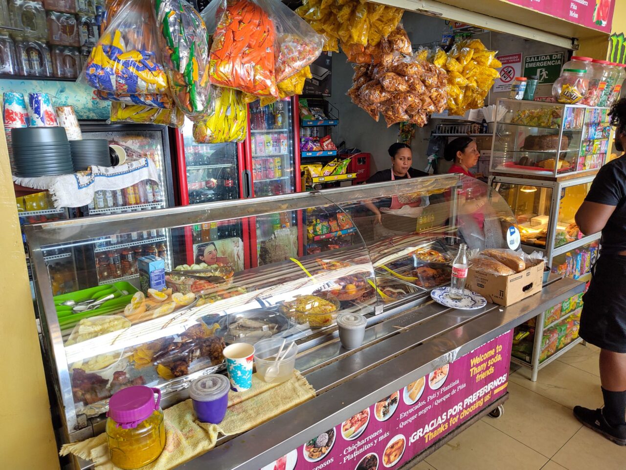 Das Busterminal ist nicht weit und recht klein, trotzdem gibt es 5 Gates mit klar beschilderten Linien. Wir unterhalten uns mit einem Tico, radebrechen auf Spanisch, eine Niederländerin unterstützt. Dann kommt der Bus, ein ordentlicher Reisebus mit Klimaanlage. Gut so, denn wir fahren 4,5 h bis San Jose. In Limon ein Zwischenstopp an einem größeren Terminal, dort kaufen wir eine Empanada, eine lecker gefüllte Teigtasche. Dann hupt der Bus bald, es geht weiter.