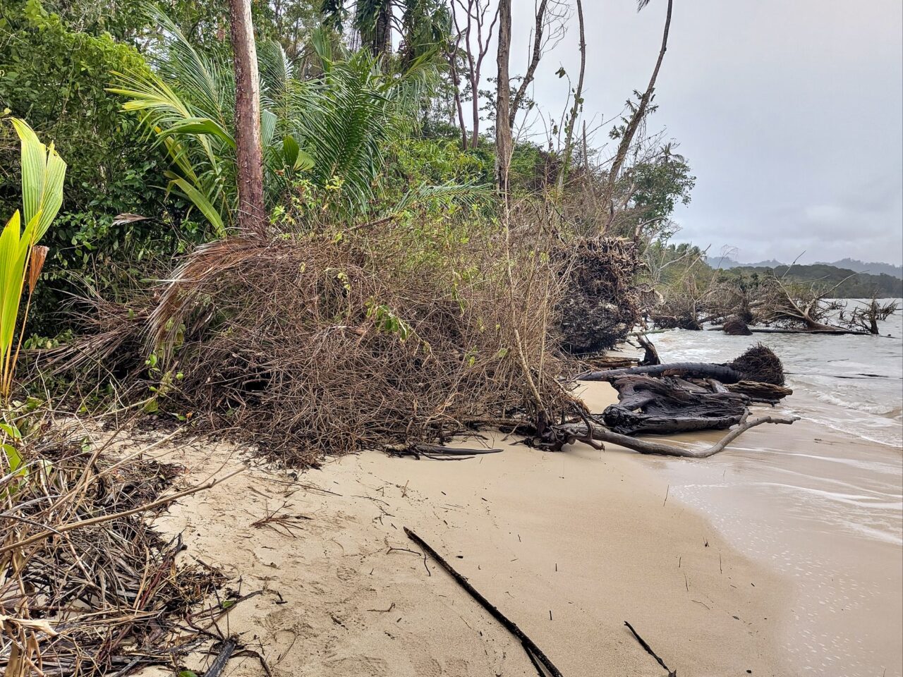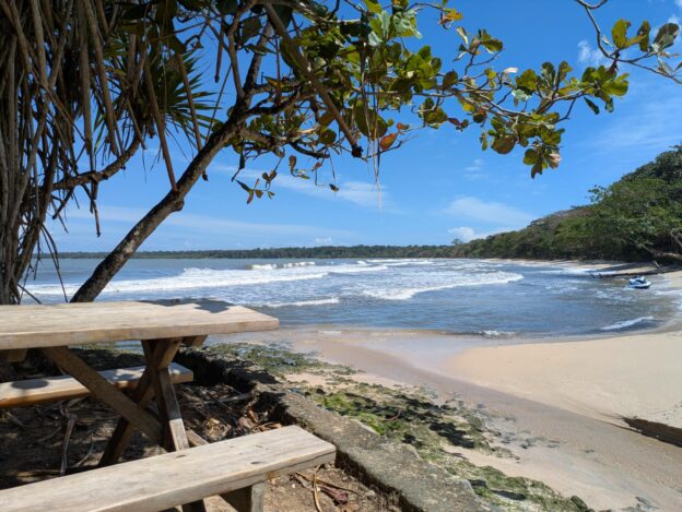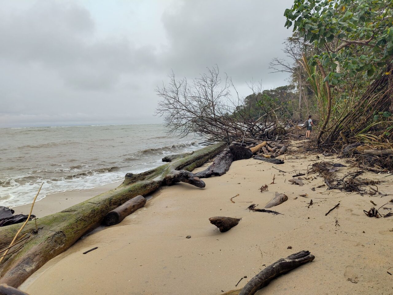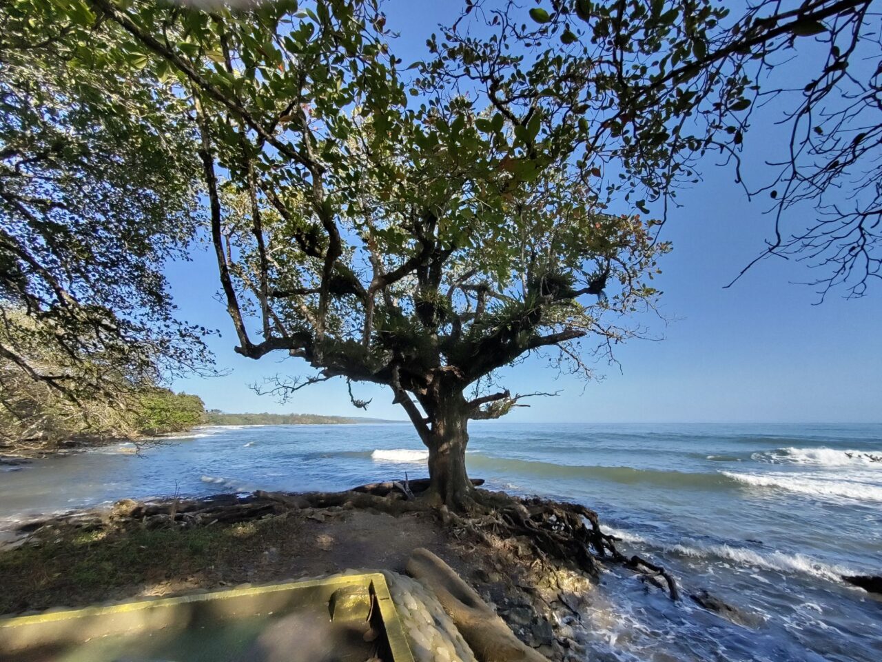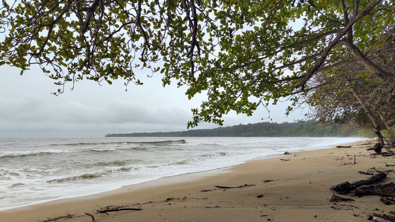 Viel Strand ist nicht mehr da. Eine heftige Hurrikan-Saison hat vor einigen Jahren den meisten Strand vor Cahuita weggespült. Jetzt nagen die Wellen am Festland, sie reichen teils fast an die Straße heran. Ein Haus wird wohl bald vom Meer geschluckt werden. Ein paar Sandsäcke stabilisieren einen Surfer Shop, aber große Schutzmaßnahmen gibt es nicht. Der Ort wird wohl wandern müssen. Der steigende Meeresspiegel hilft da auch nicht bei.