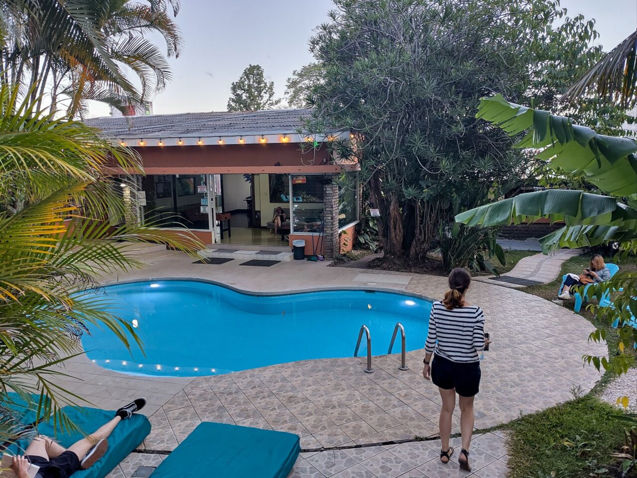 Wir kommen etwas erschöpft, aber entspannt im Backpackers Costa Rica an, in dem wir die ersten Nächte verbracht haben. Bewusst haben wir uns hierfür entschieden, um den Kreis zu schließen. Wir haben ein ruhiges, kleines, günstiges Zimmerchen mit Stockbett für uns. Allerdings wackelt alles, wenn der Zug laut pfeifend die unbeschrankten Bahnübergänge quert. Da war doch was. Also Ohrstöpsel, passt schon.